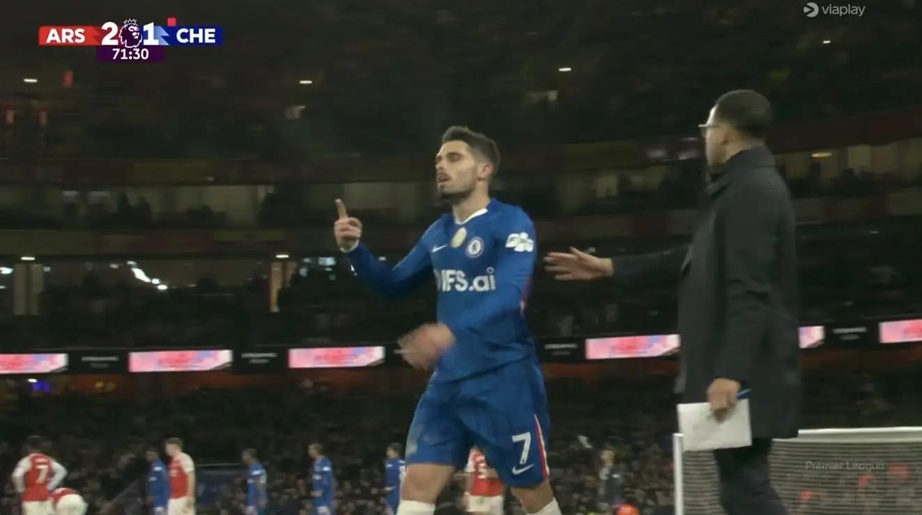 在伦敦德比中,切尔西边锋内托对马丁内利放铲,吃到第二张黄牌,被裁判罚下。